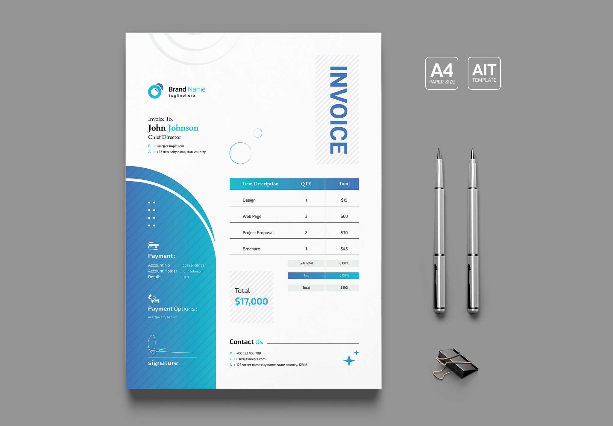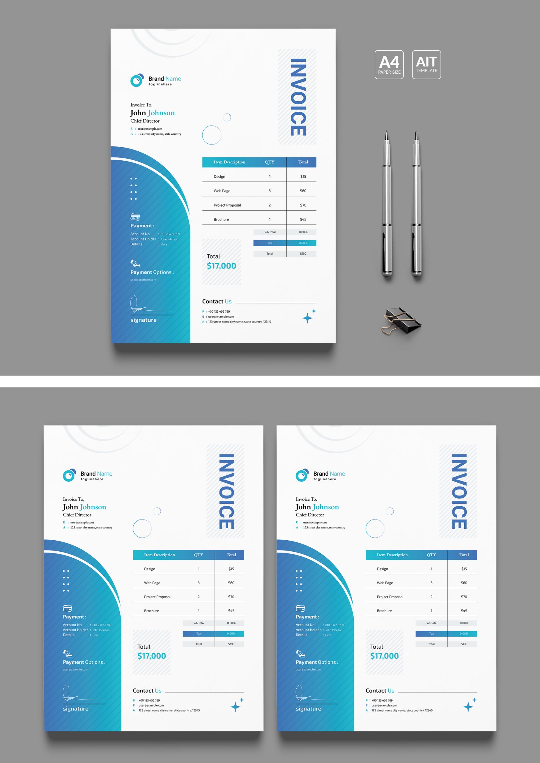 Invoice Template is editable text, logo, color & re sizable vector elements. Based designed in Adobe Illustrator CC 2022. Ready to print professional template with free fonts.