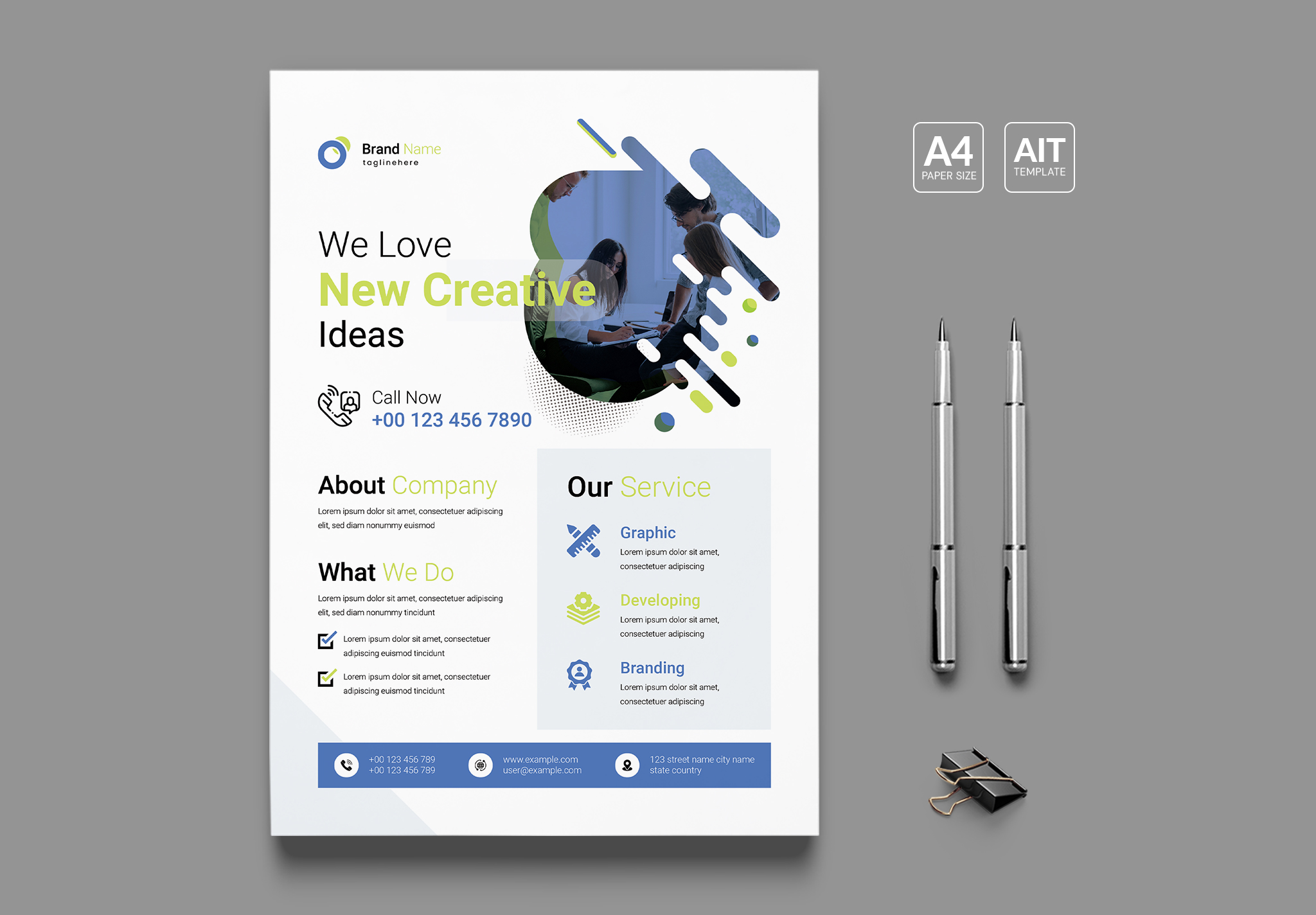 New business ideas flyer should have a clear, concise headline, your company logo and contact information, and a strong call to action.