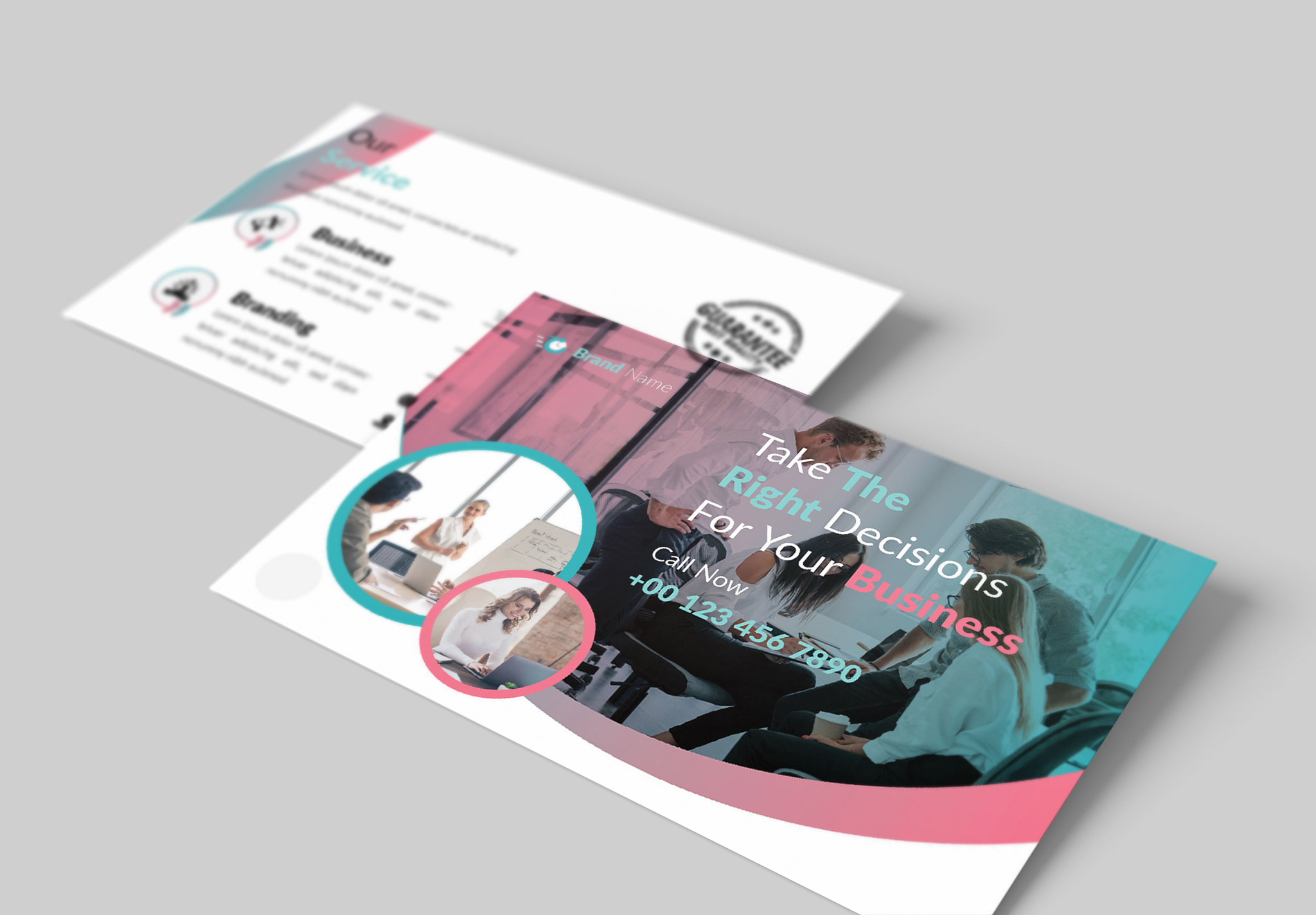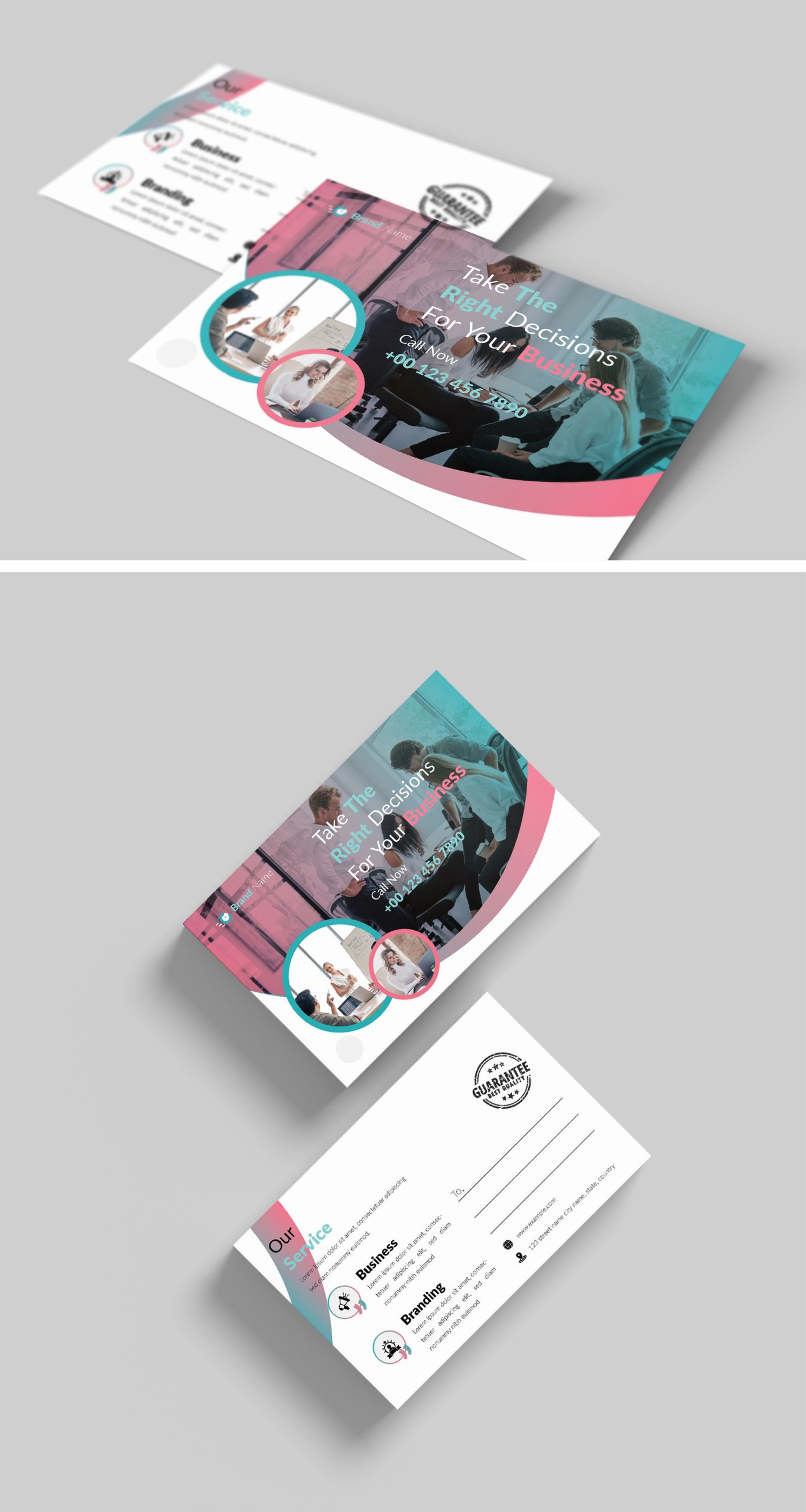 This postcard designed for visually appealing and reinforces brand identity, and the back can be used for a more detailed message, offer, or testimonial.
