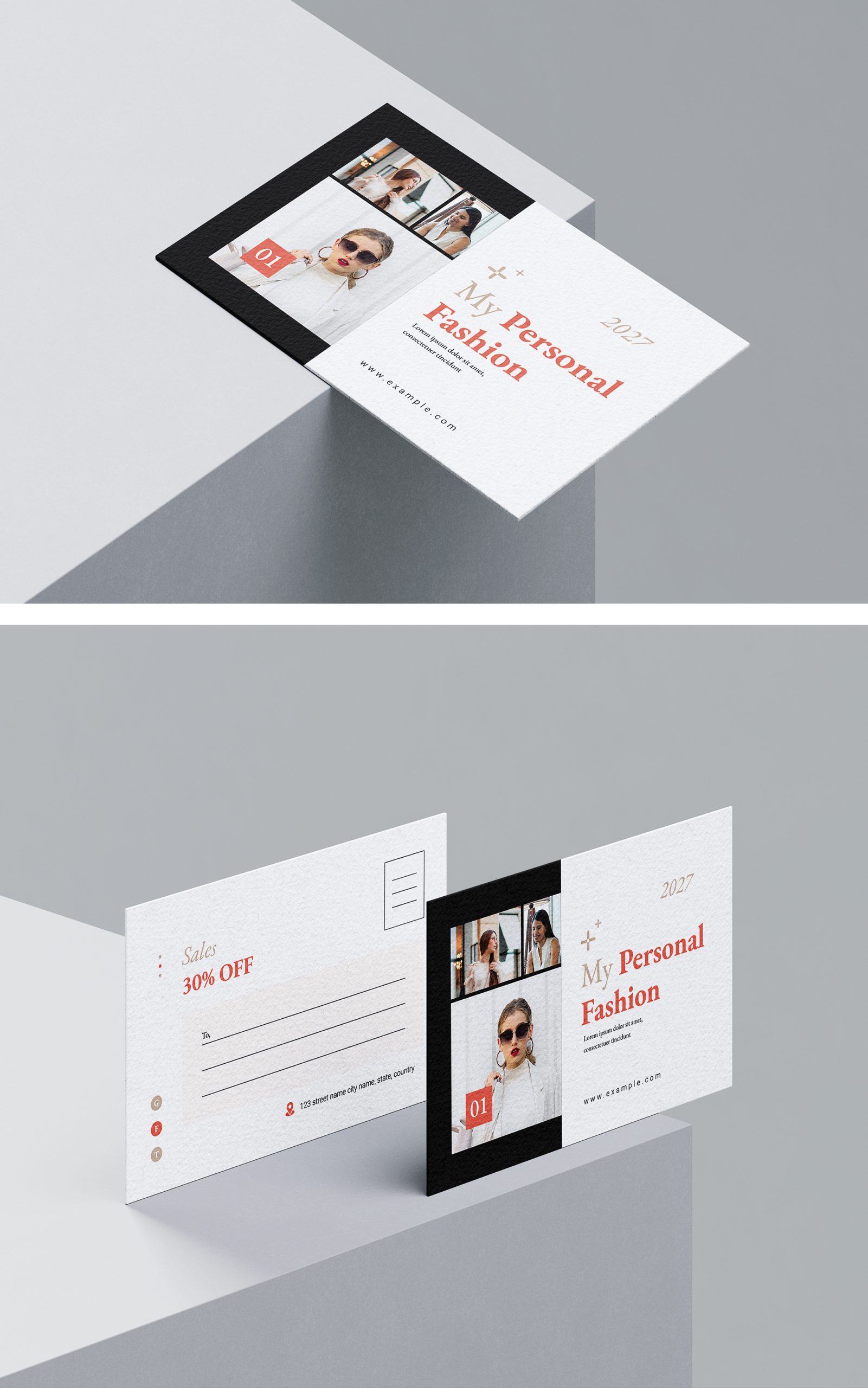 This postcard designed for visually appealing and fashion, and the back can be used for a more detailed message, offer, or testimonial.
