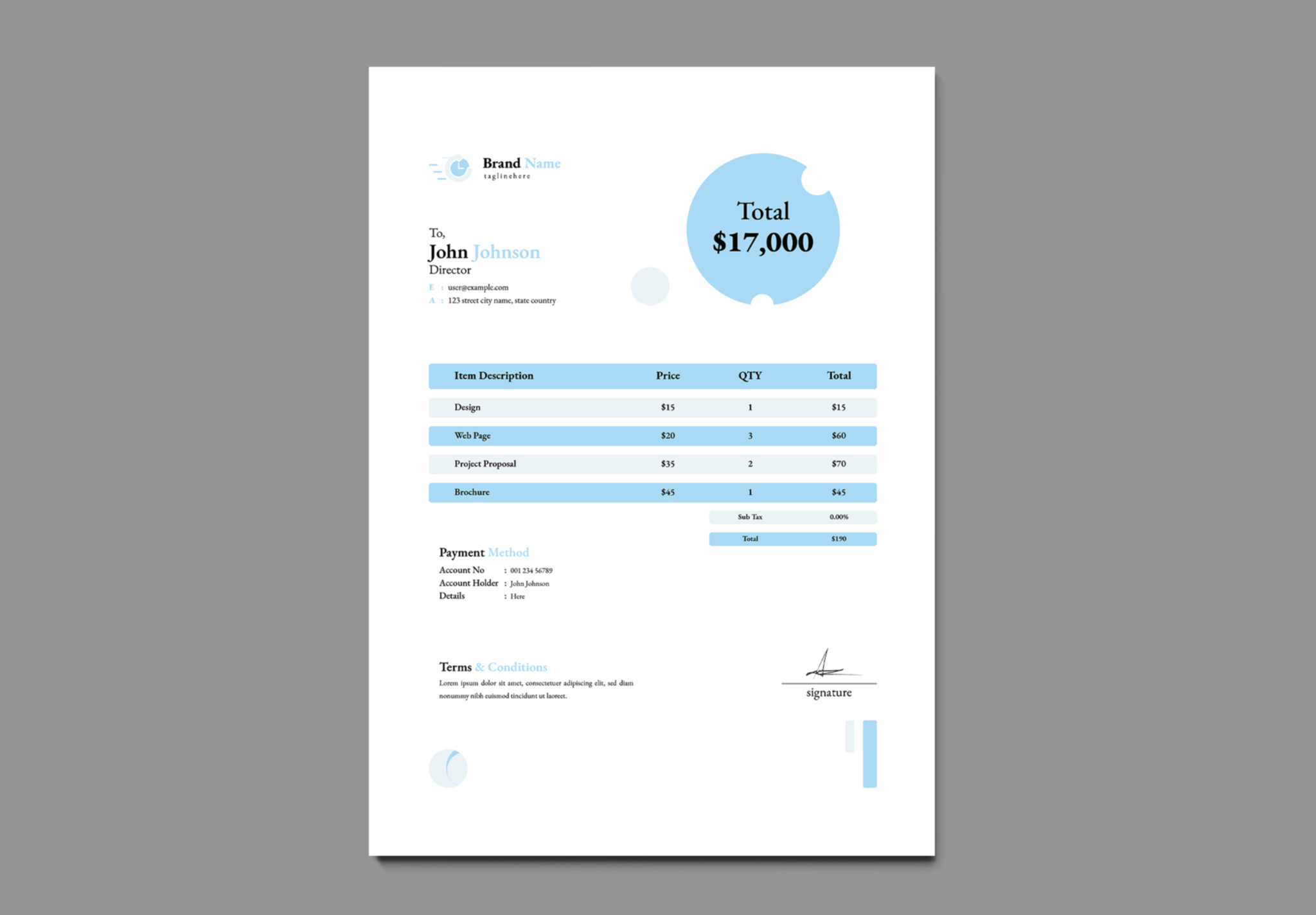 Simple Invoice Template is editable text, logo, color & re sizable vector elements. Based designed in Adobe Illustrator CC 2022. Ready to print professional template with free fonts.
